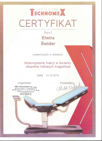 Korzyści: Zabiegi trakcji polepszają sprawność statodynamiczną kręgosłupa dzięki rozluźnieniu napiętych mięśni , rozszerzeniu przestrzeni i otworów międzykręgowych. Dzięki temu zmniejsza się ucisk podrażniający zakończenia nerwowe i zwiększa się krążenie w obszar