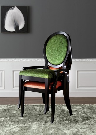 Włoskie krzesła z oparciem w kształcie medalionu.