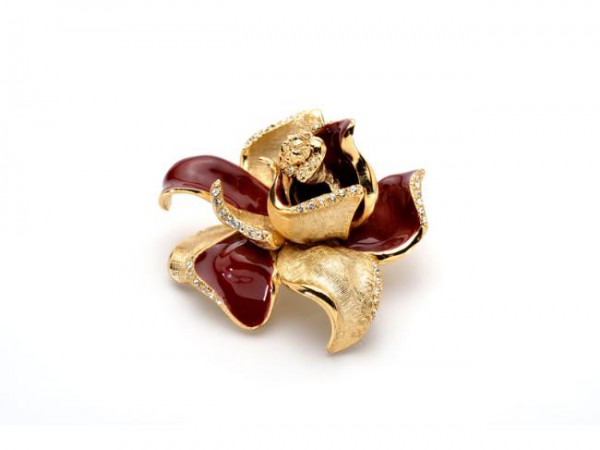 Elegancki uchwyt do mebli w kształcie róży, pokryty 24 KT złotem, wysadzany kryształkami Swarovski Elements