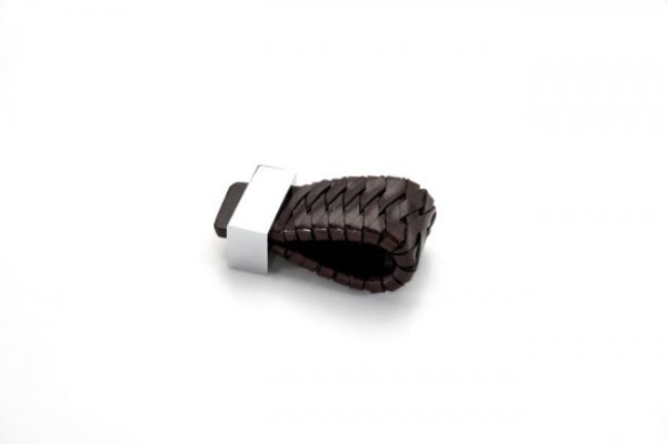 Najwyższej jakości uchwyt z plecioną skórą w kolorze ciemnego brązu.