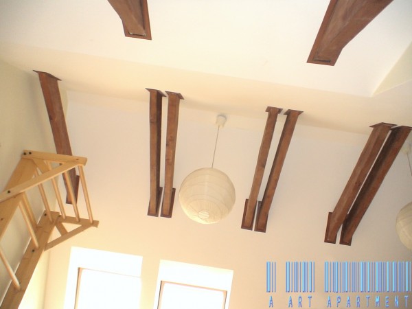 Poddasze zajmuje kolejny duży pokój /górny salon/, w którym obecnie urządzono salę fitness oraz spory, zamykany magazyn rzeczy potrzebnych - ale nie tak bardzo, których w każdym domu z czasem lawinowo przybywa.