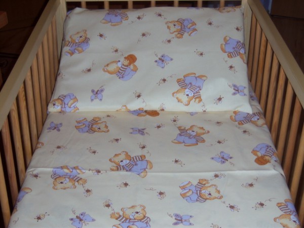 Pościel dla dzieci 100x135 z polskiej bawełny I gatunku. W skład kompletu wchodzą: poszewka na kołderkę 100 x 135 cm, poszewka na podusię 40 x 60 cm.Podane wymiary pościeli odpowiadają wymiarowi łóżeczka 70 x 140 cm. Poszewki zapinane są na bezpieczny suwaczek.