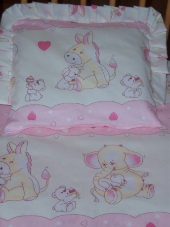 2-elementowy zestaw pościeli do wózka lub kołyski: poszewka na kołderkę - 50x70 cm, poszewka na podusię - 30x35 cm. Poszewki zapinane są na suwaczki. Wykonane z polskiej 100% bawełny.