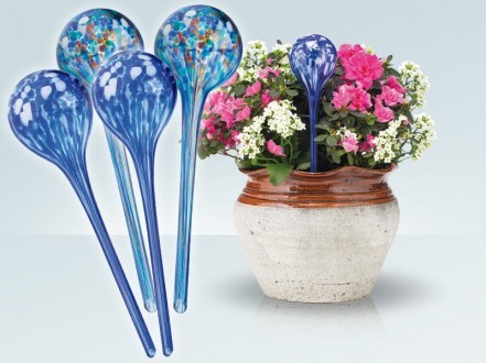 Aura Centrum Ogrodnicze prezentuje ozdobne kule nawadniające. Bardzo proste w użyciu: wystarczy napełnić kulę wodą i włożyć do doniczki, a rośliny nigdy nie będą przesuszone - woda utrzymuje się aż do 2 tygodni. Stylowa szklana kula to także piękna dekoracja.