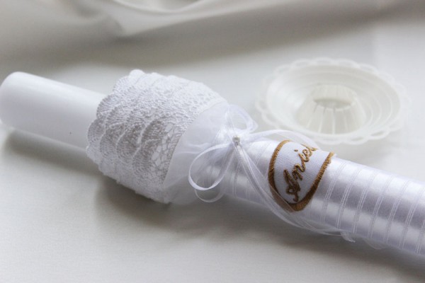 Korzyści: Świece są bardzo starannie wykonane, wg. unikatowych, autorskich wzorów. Haft imienny podkreśla indywidualny charakter wyrobu.