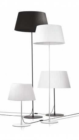 Seria lamp stojących firmy Sotto Luce z kolekcji „KAMI” jest wykonana z metalowej podstawy oraz plisowanego abażura. Lampy dostępne są w trzech kolorach z możliwością dowolnego komponowania podstawy i abażura, oraz kilku kolorów przewodów.