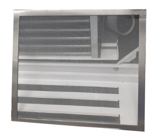 Ramka wypełniona jest gęstą siatką z tworzywa , której zadaniem jest wyłapywać pył i kurz z powietrza kierowanego do skraplacza urządzenia chłodniczego .