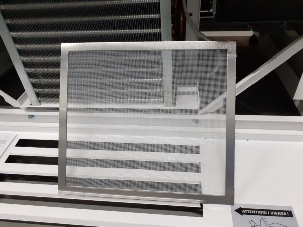 Tym samym pył i kurz zamiast osiąść na lamelkach skraplacza i blokując swobodny przepływ powietrza oraz zakłucając wymianę ciepła, osiada na siatce filtra .