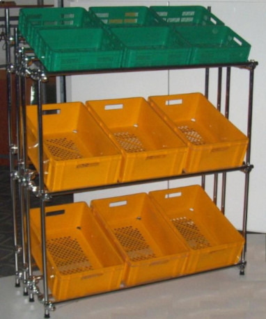 Konstrukcja regału jest wykonana na bazie systemu rurowo kulowego