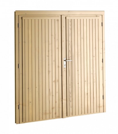 Drzwi dwuskrzydłowe HDD00 to drzwi pełne, wykonane z wysokiej jakości świerku skandynawskiego, nieimpregnowane i niemalowane. Nie posiadają przeszklenia. Drzwi wyposażone są w: zamek patent, wkładkę, komplet kluczy, klamkę i szyld.