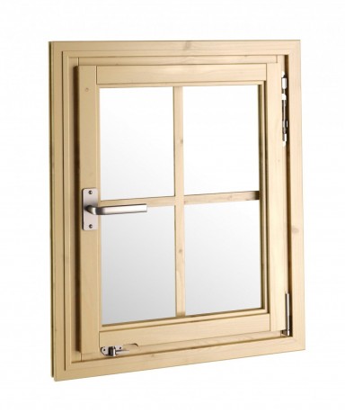 Okno jednoskrzydłowe HRE12G to okno rozwierno-uchylne wypełnione szybą 4 mm, przeźroczystą, wykonane z wysokiej jakości świerku skandynawskiego, nieimpregnowane i niemalowane.