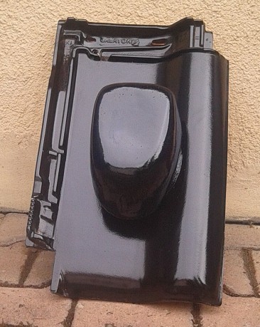 Kominek w pełni ceramiczny 130mm zamontowany w dachówke Creaton titania czarna glazura glazura,wentylacja pomieszczeń użytkowych,nie użytkowych,garaży,poddaszy,okapu,strychów.