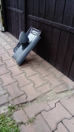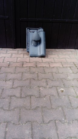 Kominek odpowietrzający 100 mm montowany pod kątem 35 stopni w dachówce Creaton Titania kolor łupek,kominek słuzy do odpowietrzenia pomieszczeń nie użytkowych ,użytkowych,strychów,garaży,kanalizacji itp.Kominek w całości ceramiczny