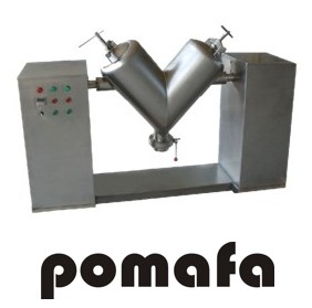 Mieszalnik w kształcie litery V są powszechnie stosowane w przemyśle farmaceutycznym, i spożywczym w celu mieszania proszków i granulatów. Urządzenie składa się z dwóch zbiorników o różnych V lub samych wysokościach. Przez przekładnie mechaniczną, materiały z obu zbiorników są przemieszczane tam i z powrotem, mieszalnik obraca się o 360 stopni, aby uzyskać jednolite wymieszanie materiału. Oba zbiorniki tworzące układ V są zbudowane ze stali kwasoodpornej opcjonalnie SS316L polerowanej od wewnątrz i zewnętrz, aby spełnić standardy GMP.