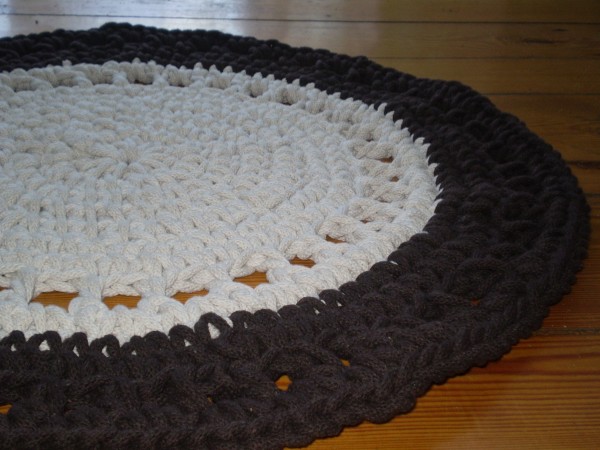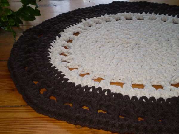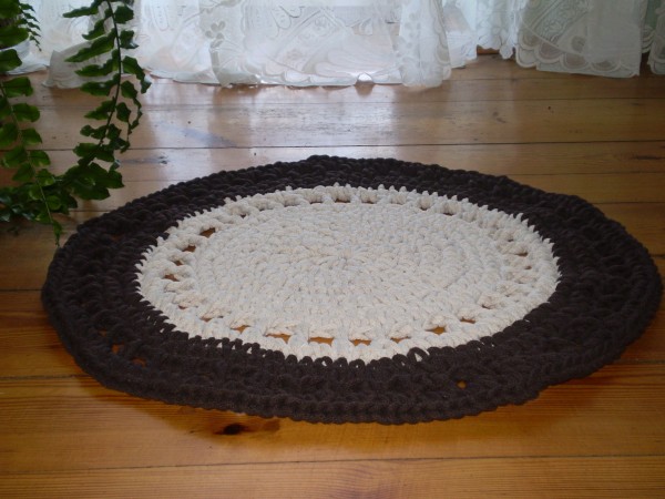 Okrągły dywanik robiony na szydełku ze sznura bawełnianego.Zastosowano dwa kolory beż i ciemno brąz.Średnica 60 cm.Idealnie pasuje do kuchni,salonu,łazienki. Przyjemny w dotyku.Można prać w pralce w 30 stopni Celsjusza lub ręcznie.Nie mechaci się i nie rozciąga się.Ma właściwości antyalergiczne.Zapraszam na zakupy.Cena atrakcyjna.