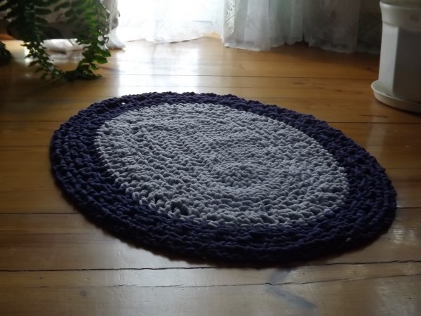 Piękny dywanik owalny robiony ze sznura bawełnianego.Zastosowano dwa kolory jasno fioletowy i ciemno fioletowy.Rozmiar dywanika długość 90 cm,szerokość 70 cm.Idealnie nam będzie pasować do salonu,kuchni,łazienki.Można prać w pralce w 30 stopni Celsjusza lub ręcznie.Nie mechaci się,i nie rozciąga się,Ma właściwości antyalergiczne.Zapraszam Państwa na zakupy i polecam gorąco.Moje rękodzieło wyróżnia się z dbałością o każdy szczegół i wykonanie bardzo staranne