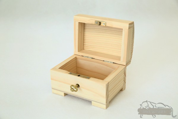 Drewniany kuferek z kluczykiem idealna gablotka na Twoje drobiazgi oraz drogocenna biżuterię.