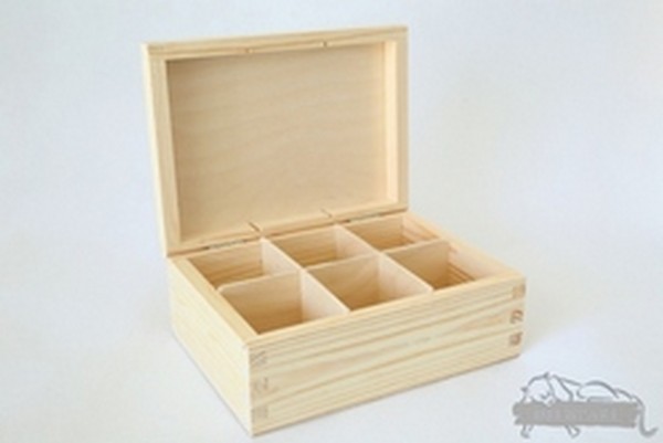 Drewniane pudełko z przegródkami idealne do przechowywani drobiazgów, biżuterii, herbaty oraz wielu innych rzeczy.