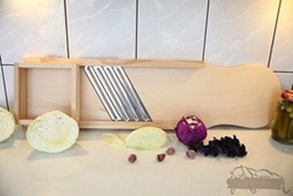 Duża szatkownica do warzyw wykonana z drewna. Posiada 4 niklowane noże wysokiej jakości. Niklowanie zapobiega korozji noży. Tarka posiada szufladkę która znacznie ułatwia i usprawnia pracę z tarką.