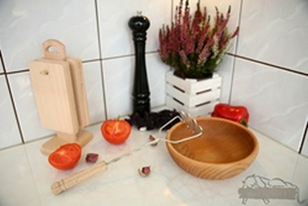 Rączka tłuczka wykonana z drewna bukowego cała reszta wykonana z wysokiej jakości stali. Świetnie nadaję się również na tani gadżet reklamowy z grawerem.