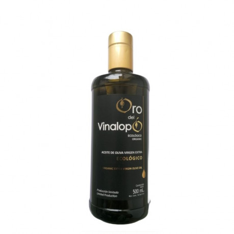 Ekologiczna oliwa z oliwek Oro del Vinalopó to najwyższej jakości oliwa z oliwek extra virgin. Produkt klasy Premium serii limitowanej, wytłoczona na zimno za pomocą środków mechanicznych. To czysty sok wyciśnięty z ekologicznych wyselekcjonowanych oliwek, bez użycia jakichkolwiek środków chemicznych. Dzięki ekstremalnie niskiej kwasowości 0,13% i specjalnemu kupażowi, oliwa ta ma delikatny smak pozbawiony charakterystycznej dla oliwy goryczki, nadaje się idealnie dla dzieci i niemowlaków. Ekologiczna oliwa z oliwek Oro del Vinalopó z powodzeniem spełnia najwyższe wymagania oliwy z oliwek extra virgin dla dzieci.Oliwa wytłoczona z oliwek zebranych w gospodarstwie w którym je uprawiano i tam też butelkowana. W maju 2018 oliwa ta zdobyła nagrodę specjalną dla najlepszej oliwy ekologicznej Regionu Walencja.