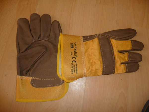 Rękawice robocze wzmacniane skórą licową, całodłoniowe mankiet podgumowany, drelich żółty CE I EN 420