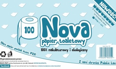 Nova100 najdłuższy papier toaletowy użytku domowego. To co wyróżnia go na tle innych artykułów higienicznych to ogromna wydajność, wytrzymałość oraz miękkość. Do jego produkcji wykorzystuje się czystą makulaturę bez dodatku tektury, dzięki temu papier zachowuje jasny kolor i niezwykłą delikatność.