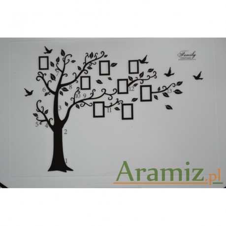Duża naklejka ścienna, artystyczne drzewo rodzinne z ramkami na zdjęcia