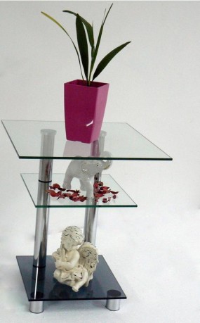 U nas można kupić szklany stolik kawowy o wymiarach blatu 45x45 cm i wysokości 60 cm. Na życzenie klientów wykonujemy także stoliki kawowe o innych wymiarach. Stolik posiada dodatkową półkę- podstawkę ze szła grafitowego o wymiarach 35X35 cm. Całość osadzona jest na nóżkach metalowych. Dodatkowo do proponowanego przez nas modelu można dodać kółka.
