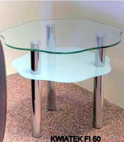W sprzedaży posiadamy szklany stolik kwiatek o średnicy 70 cm z praktyczną półką poniżej blatu. Stolik proponujemy w dwóch wariantach do wyboru: