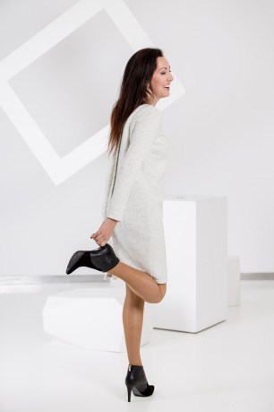 Ciepła propozycja dla Pań ceniących uniwersalność z klasyką i wygodą. Sukienka pod szyję na elastycznej podszewce, z tyłu zapinana na zamek. Przeszycie z przodu modelu przechodzi w kieszeń nadając modelowi lekkości i ponadczsowości. Na plecach elegancka plisa roszerzająca się na dole sukienki w rozporek.