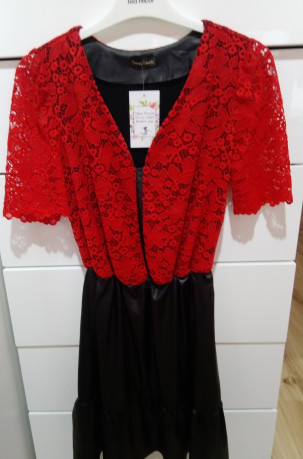 Sukienka w rozmiarze M. Góra wykonana z koronki, dół z materiału skóropodobnego.