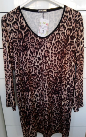 Sukienka o modnym wzorze panterki. Materiał: dzianina w panterkę. Rozmiar: M