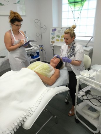 Na całość szkolenia składają się zajęcia teoretyczne i praktyczne. Przed każdym zabiegiem instruktor wykonuje pokaz na modelce a następnie kursant wykonuje zabieg kosmetyczny. Naszym atutem jest duża ilość zajęć praktycznych, które stanowią 90% nauki podczas, których kursanci ćwiczą zdobytą wiedzę i umiejętności.