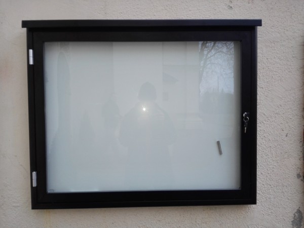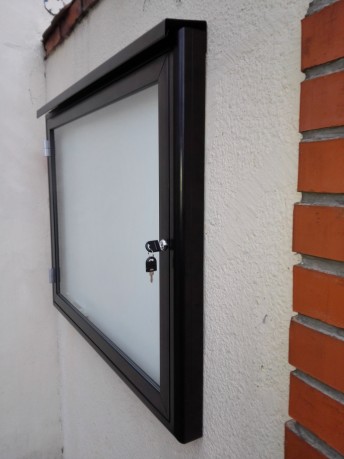 Gablota wykonana z profili aluminiowych malowanych proszkowo klor czarny mat lub każdy inny wg palety RAL.