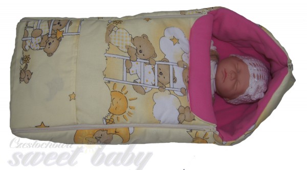 śpiworek z przodu posiada kieszonkę dzięki której możesz mieć zawsze potrzebne drobiazgi pod ręką np. smoczek , pieluszkę