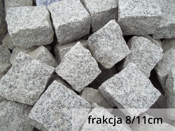 Kostka granitowa szara, frakcja 8/11cm, pakowana w big bagach. Cena za tonę. Wydajność z jednej tony około 4,5m2. Przeznaczona na chodniki i podjazdy pod domem. Zapraszamy do obejrzenia na placu w firmie Kamień i Drewno w Kurianach przy Drodze krajowej nr 19
