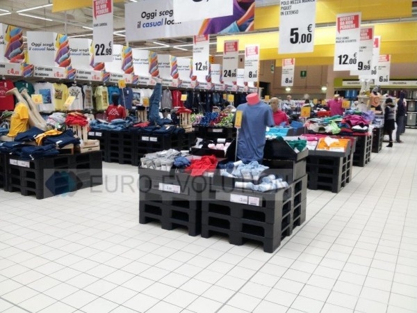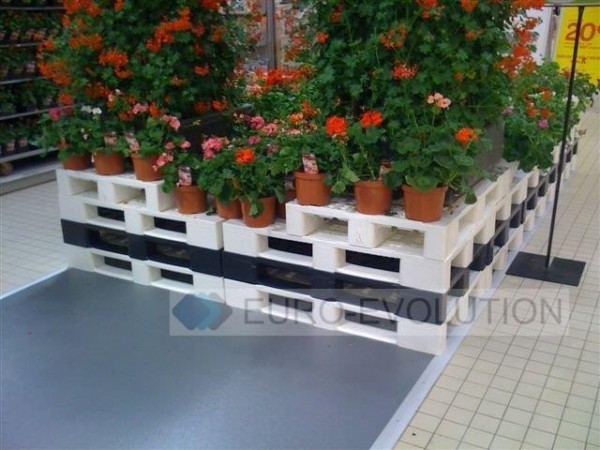 Palety plastikowe włoskiej produkcji. Wymiary 1200x800x160mm. Waga 11,3 kg (+/- 0,2 kg). Solidne, lekkie i bezpieczne. Łatwe w utrzymaniu czystości. Lekkie w transporcie. Są idealne do budowania wysp promocyjnych i ekspozycji w supermarketach. Szeroka gama kolorów.