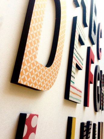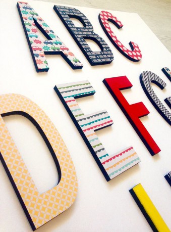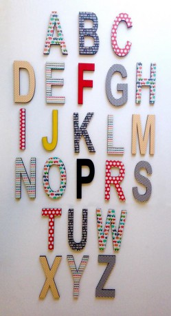 Alfabet wycinany ze sklejki 10mm. Wysokość jednej literki to 18,5 cm. Zdobiony jest za pomocą wysokiej jakosci, ekologicznych papierów scrapbookingowych. Piękna kolorystyka prezentowana na zdjęciach świetnie wkomponuje sie w nowoczesne wnetrze.