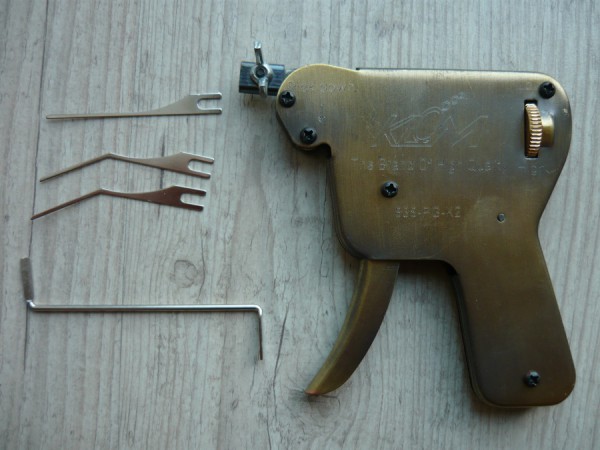 W sprzedaży posiadamy markowy pistolet- wibrator do zamków, a dokładniej mówiąc do ich awaryjnego otwierania. Dzięki drganiom pistolet niemal sam otwiera zatrzaśnięty zamek. Tego typu narzędzie można stosować także do otwierania zamków antywłamaniowych z kluczami nawiercanymi.