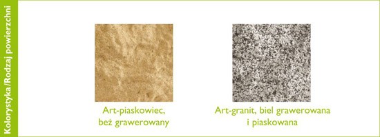elementów systemu przy zachowaniu stałej, wysokiej jakości kolorystycznej. W połączeniu z pierwszej jakości składnikami uszlachetniającymi powstają następujące powierzchnie, w których dostępna jest Linia Art: Art-piaskowiec, Art-granit biały.