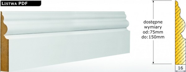 Standardowo listwy wykonujemy w rozmiarach : 50/75/125/150mm wysokości