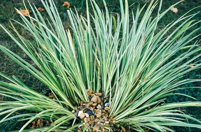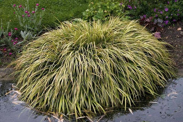 niziutkie rośliny zimozielone rosnące w kształt podkówki.Odm złotozielona i odm białozielona.