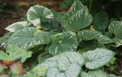 cała roślina wygląda bardzo ładnie ,liście są sercowate ,duże zielone w białe łaty ,w drugim przypadku całe białawe z wyraźnymi żyłkami zielonymi.