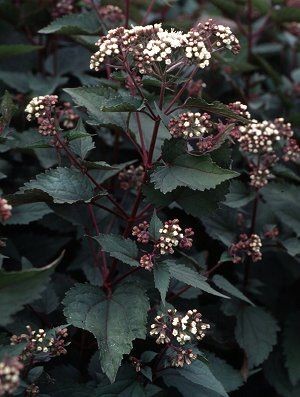 olbrzymie rośliny2m-2,50.Grube sztywne łodygi jak u krzewów zakończone wiechą kwiatową ,bardzo pachną .Kwitnienie jesienne wrzesień -listopad.dotychczas znaliśmy roślinę o kwiatach ciemno różowych ,obecnie nowsza odmiana chocholade ma prawie czarne liście i białą wiechę kwiatową-jest nieco delikatniejsza od poprzedniej.