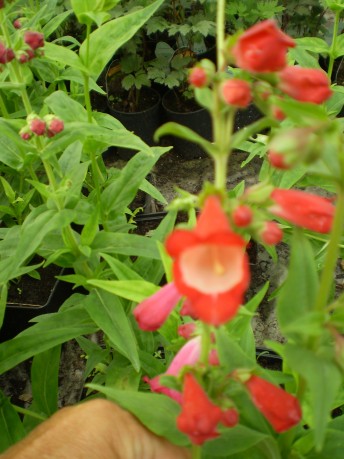 wysokość ok0,80cm.dzwonki jak u naparstnicy z kolorowa łezką w środku w różnych kolorach.występuje też penstemon letni t.j miniaturka poprzedniego.