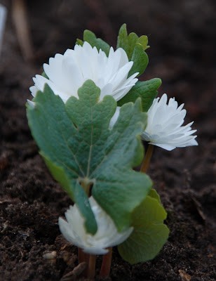 Kwitnienie maj.duże liście jak u nasturcji,wyżej wyniesione bielutkie kwiaty o pełnych płatkach .Bywaja tez o kwiatach pojedynczych lub bordowych.