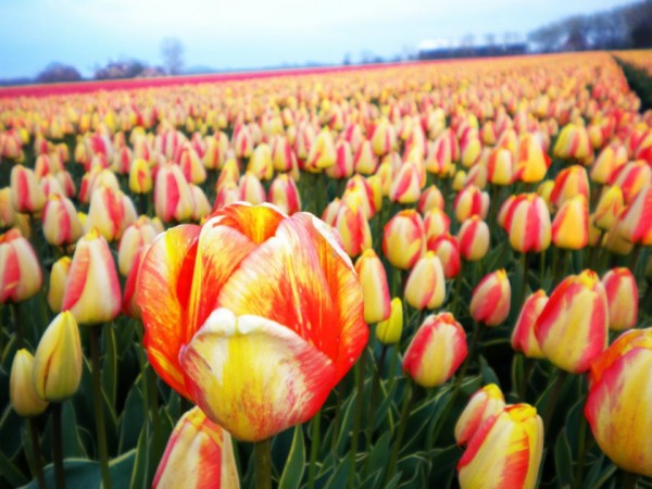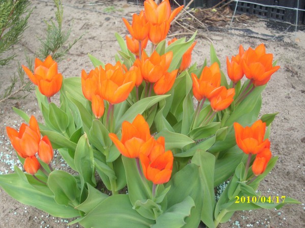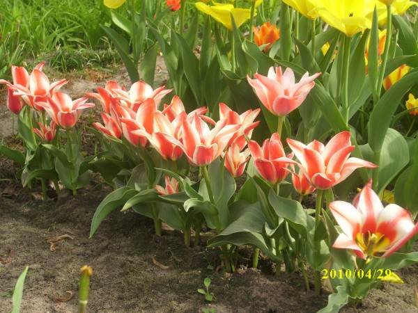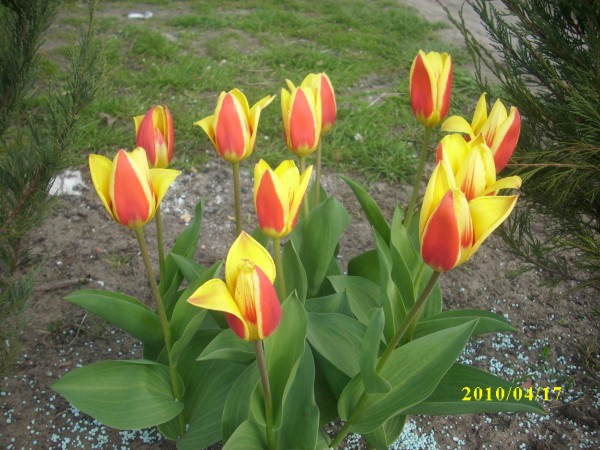 botaniczne-duży kwiat łodyżki niskie ,często liście w paski i plamy.