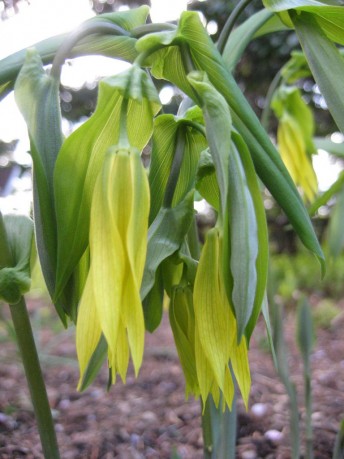 Wysokie łodygi u góry przewieszające się obsypane zwiniętymi 4ro płatkowymi żółtymi kwiatami.