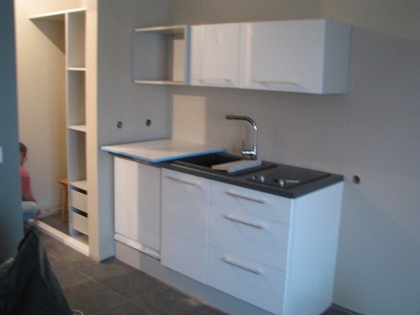 Oferujemy meble kuchenne na wymiar. Decydując się na nasze meble otrzymujecie Państwo gotowy produkt z dokładnym montażem. Meble wykonane są z materiałów renomowanych polskich i zagranicznych firm przy zachowaniu wszelkich standardów sztuki stolarstwa. Powyższe zdjęcia przedstawiają nowoczesną kuchnie - kolory: fronty - biały acrylux, korpusy - popiel, szuflady tandembox, podnośniki blum aventos HK-S, blat Kronopol Eliza.